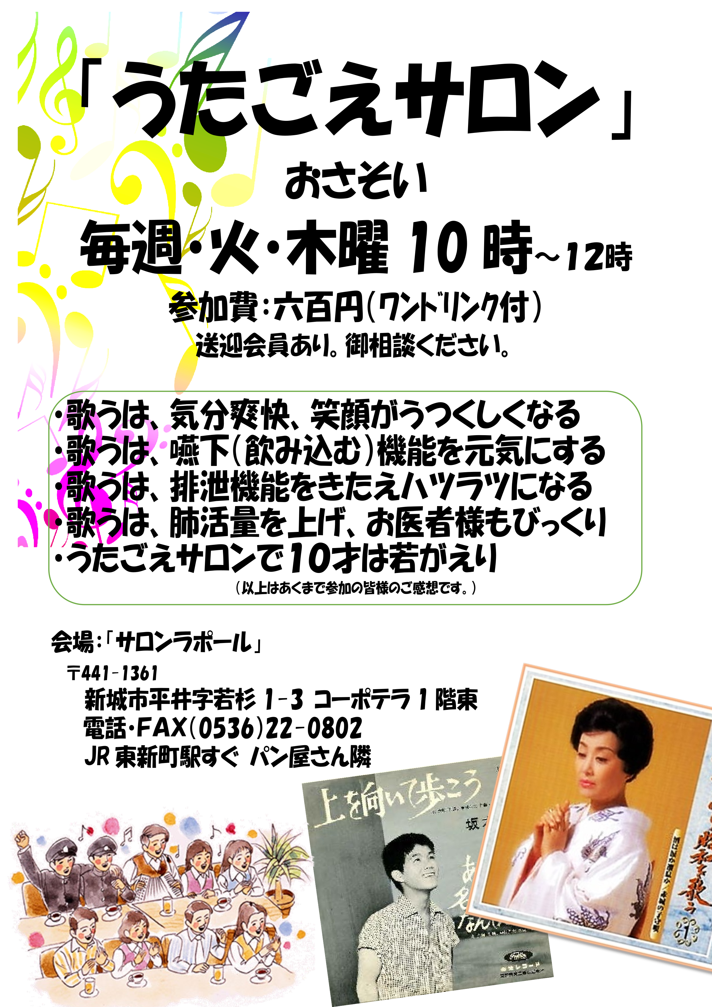 これから、うまく調整して、いつまでも歌を楽しみ健康で暮らせるサロンとしていきたいと思います。